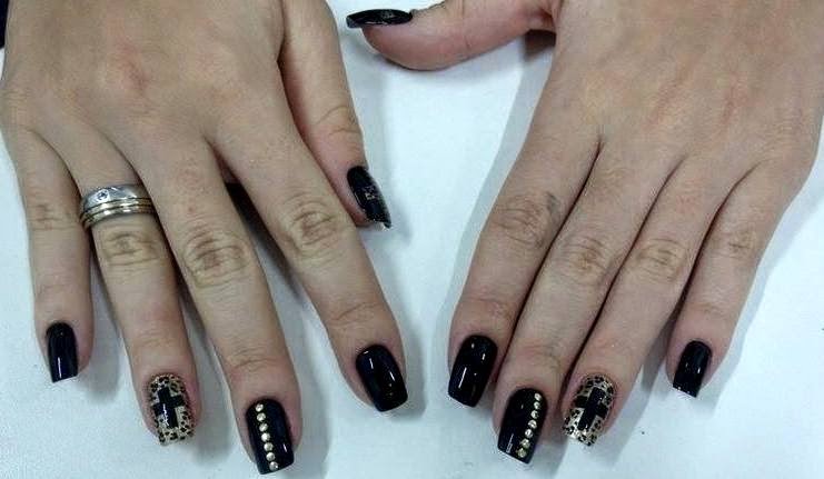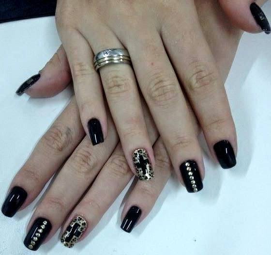 Finalizamos com spikes no dedo médio que deu um charme a mais entrando em harmonia com a decoração.