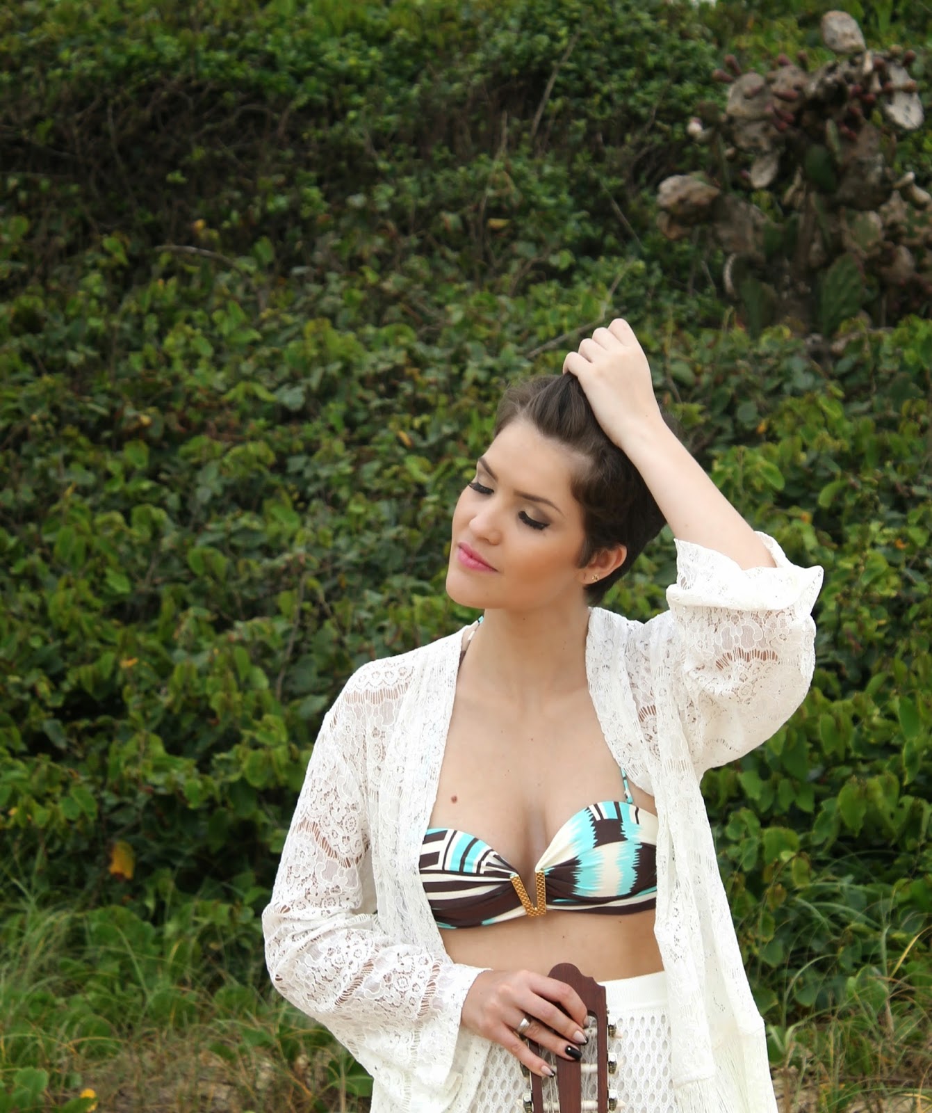 Mesmo sendo uma noite de verão, na praia as vezes bate aquela brisa gelada e uma ótima opção é apostar em um kimono, ele é fresquinho, leve e está super na moda... misturei as tendências e amei!