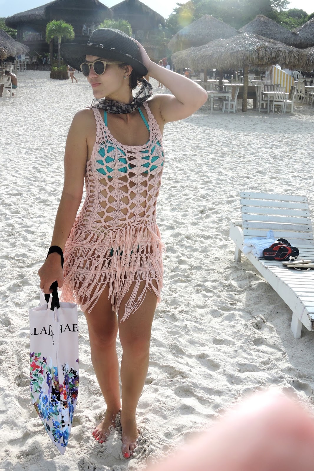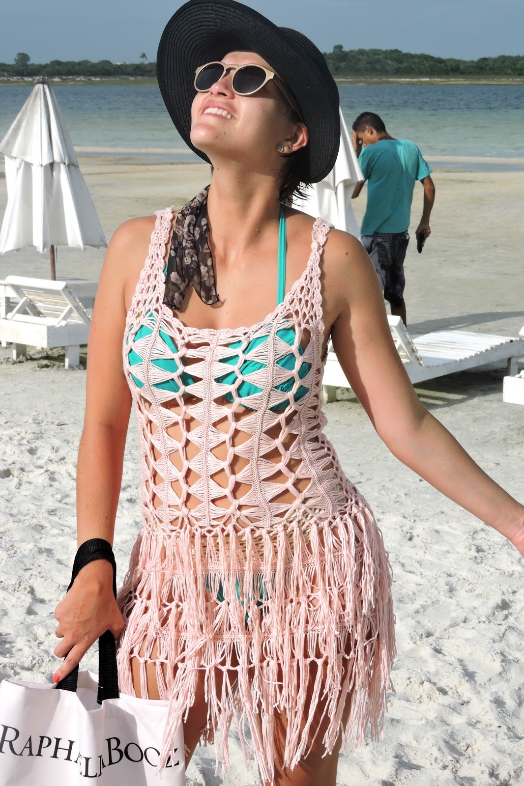 O diferente da produção foi essa saída de praia de trico! O fio que é super usado no inverno, estampou meu verão com essa peça que já virou meu xodó!Diferente dos trajes com tricos pesados do inverno, essa peça é extremamente leve, cheia de movimento e fresquinha, com várias aberturas e ao mesmo tempo comportada. Dentro das vantagens também vale citar a misturas de tendências de franjas com a cor do ano rose quartz.