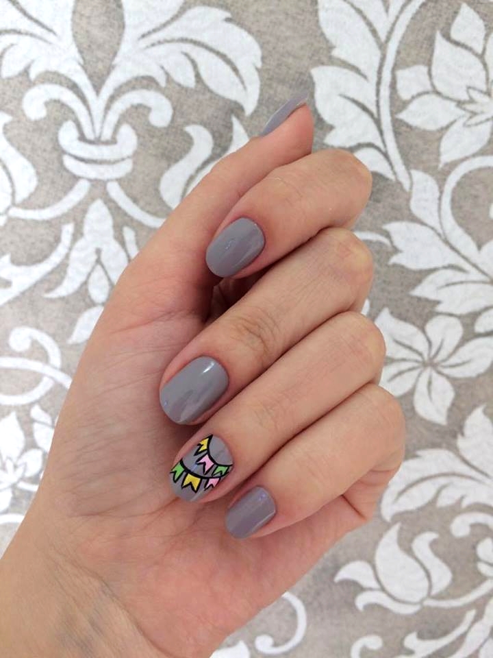 O clima de arraiá ficou por conta das bandeirinhas coloridas nas unhas dos dedos anelares que a Re fez manualmente com pincéis.