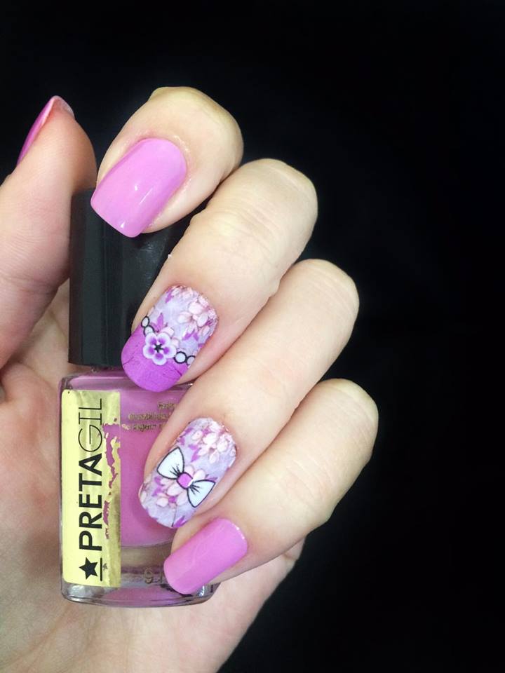 Nessa semana a decoração ficou por conta das películas impressas da Amanda Fagundes, essa foi a primeira vez que usei esse tipo de película e me surpreendeu bastante a perfeição dos detalhes e também a durabilidade. Para combinar com o esmalte rosa, escolhi uma película floral super meiga e com muito rosa.