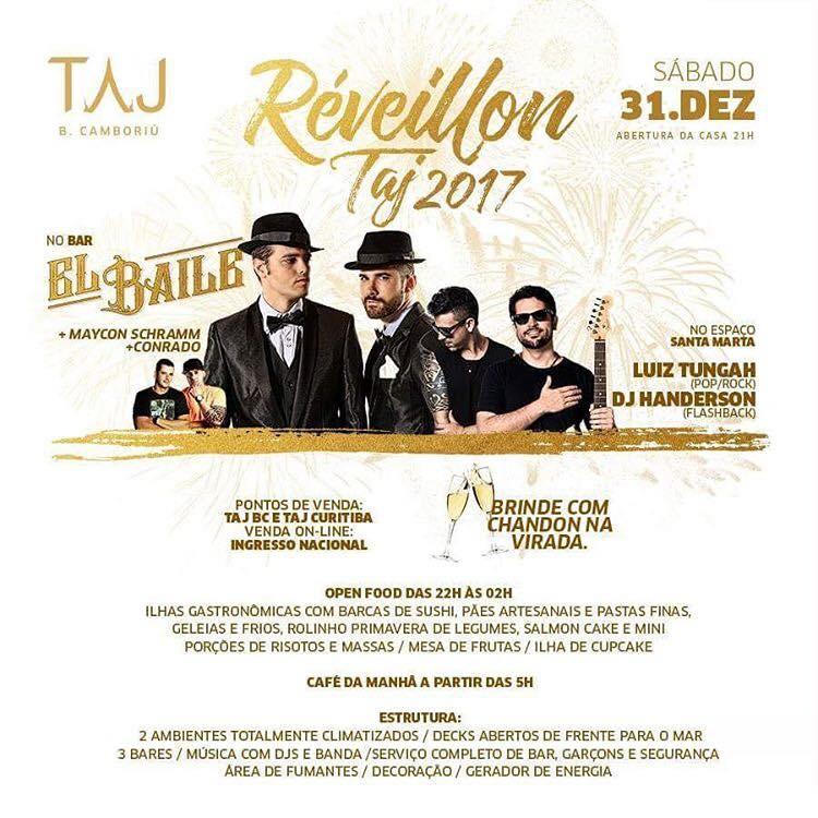 O sul do Brasil é um dos destinos mais procurados para veraneio e festas de fim de ano e dentre as cidades mais baladas está Balneário Camboriú com sua vasta beleza e inúmera atrações. A dica que trago para vocês hoje é para um réveillon memorável com muita gente bonita no charmoso Taj Bar, que está preparando uma noite incrível para começarmos 2017 da melhor maneira possível!
