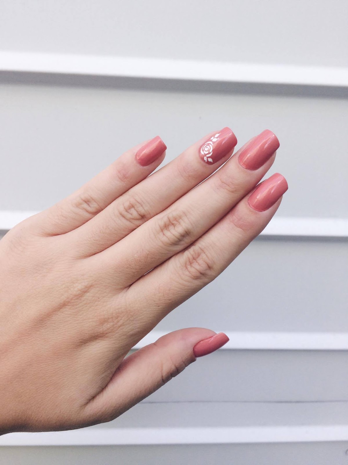 Esse esmalte é um tom de rosa queimado com um discreto efeito