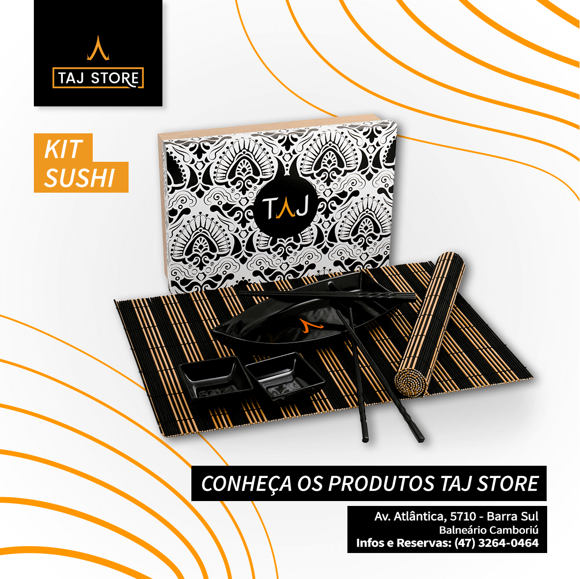 A TAJ Store vai trazer para os fãs do TAJ peças de decoração, como os budas e o jardim zen, acessórios como óculos de sol, necessaires, pulseiras, chokers, copos, taças e canecas utilizadas para servir drinks do Taj Pharmacy e ainda porta copos, champanheira, garrafa térmica e kits para sushi, churrasco, vinho e até hambúrguer. A loja de Balneário também conta com produtos exclusivos da marca feitos especialmente para o clima de praia, como Biquínis com estampas únicas, Saídas de Banho, Cangas, Bodies, Calças de ginástica, Bonés e Chinelos, artigos que levarão um pedacinho do bar para dentro da casa e do dia a dia de cada cliente.